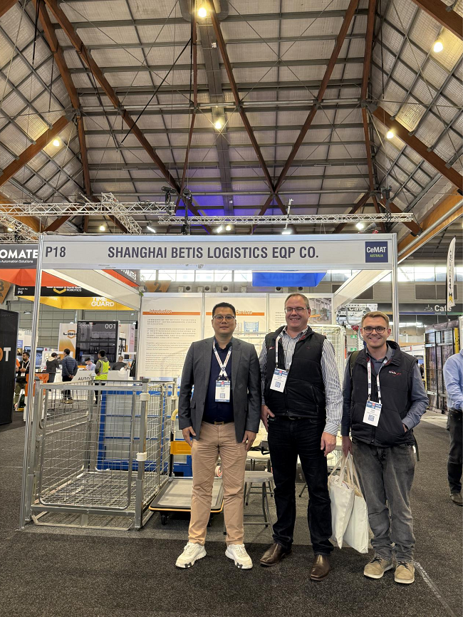 Shanghai Betis Logistics Equipment Co., Ltd. is pleased to announce our participation in CeMAT Australia 2025, held in Sydney, Australia in July 2025. Our team exhibited at Booth P18, presenting our latest logistics equipment solutions, including wire mesh containers, roll cage trolleys, foldable steel stillages, and stacking racks, drawing strong interest from industry professionals across Australia and the Asia-Pacific region.